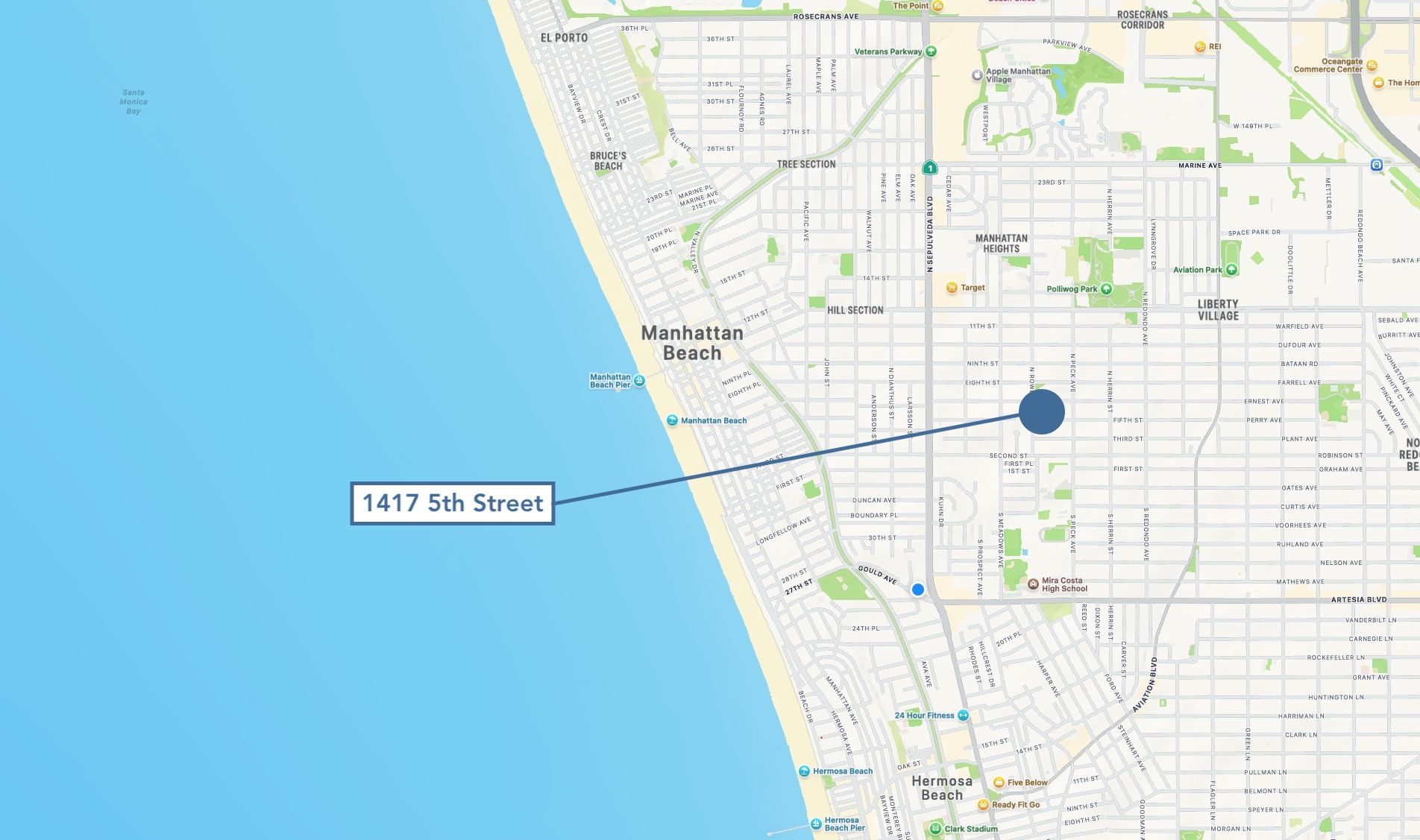 1417 5th Street (Manhattan Beach) is located in the Mira Costa section of East Manhattan Beach and is situated on a large 7,497 sqft lot measuring 50′ x 150′ that sits elevated above the street. Proposed 4,600 sqft build consisting of 5 Beds and 5 Baths with a 3-car garage.